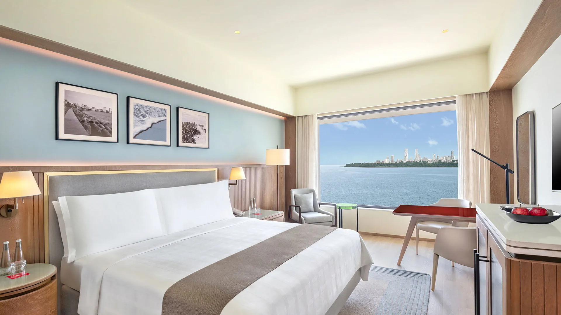 Spacious upgraded room with Marine Drive sea view, large windows and enhanced comfort for couples or premium stays.