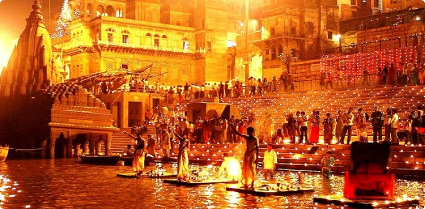 A luxury stay overlooking the Ganges with evening classical music and yoga.